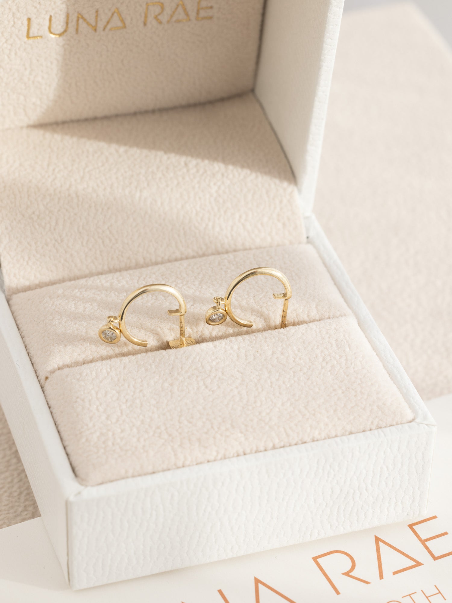 • Diamond Detailing: Each hoop features two 2mm brilliant-cut white diamonds, adding a touch of luxury and celestial charm to any outfit​.