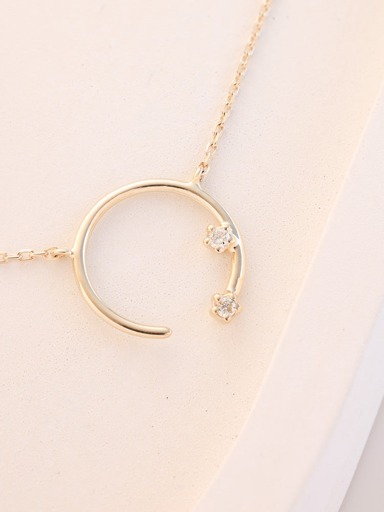 The halo-shaped pendant, made from solid 9K gold, shines with two brilliant white diamonds, radiating the timeless beauty and strength of the Moon Goddess.