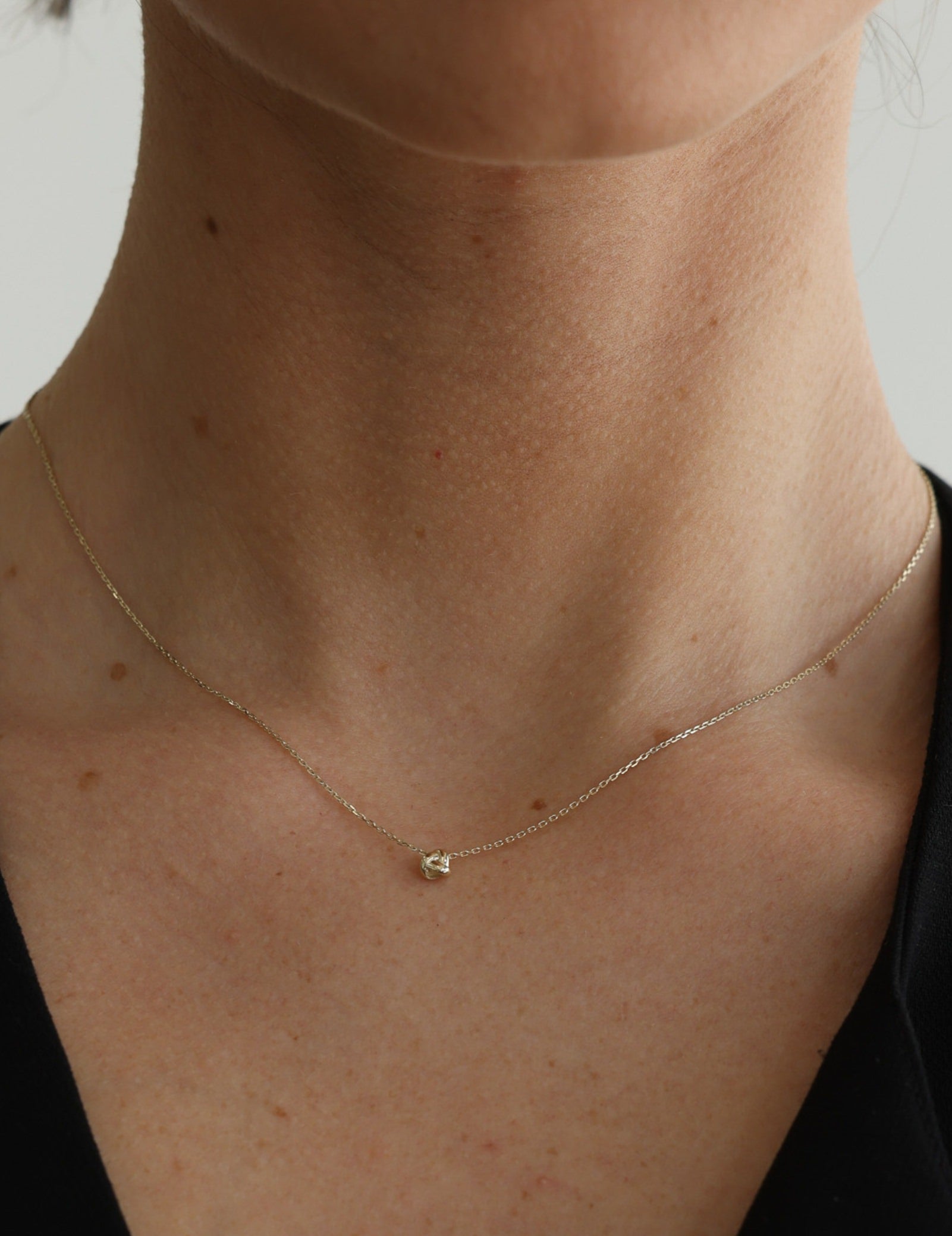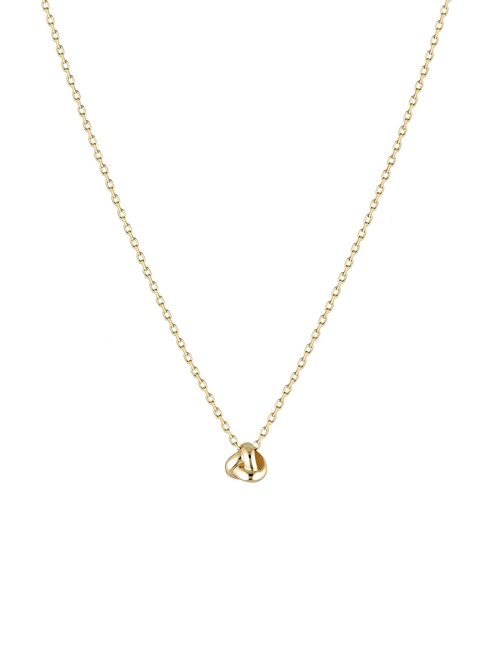 The Forget Me Knot Necklace features a beautifully crafted knot pendant, measuring 2.6mm thick and 4mm in diameter. With a total gold weight of 0.93 grams, this piece is made from solid, nickel-free 9k gold and comes with a 40 cm chain, offering a perfect balance of elegance and simplicity for everyday wear.