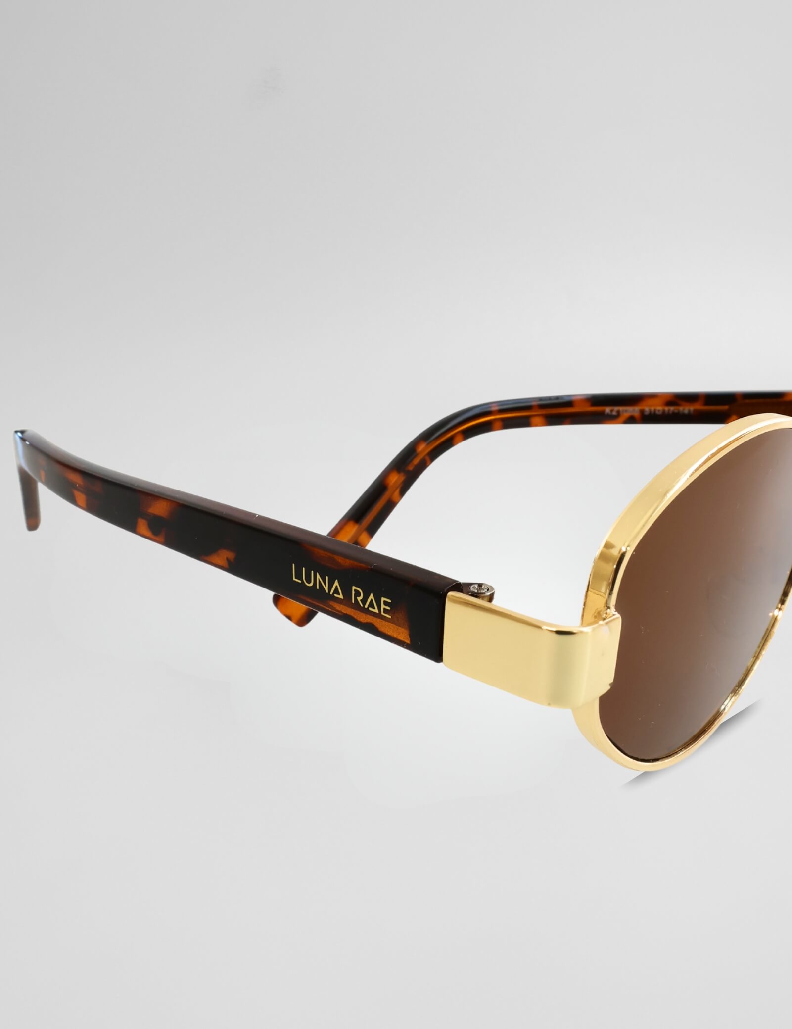 A classic pair you’ll keep reaching for. Golden Hour Sunglasses feature slim gold rims, softly rounded lenses, and tortoiseshell temples for a warm, easy-to-wear look.