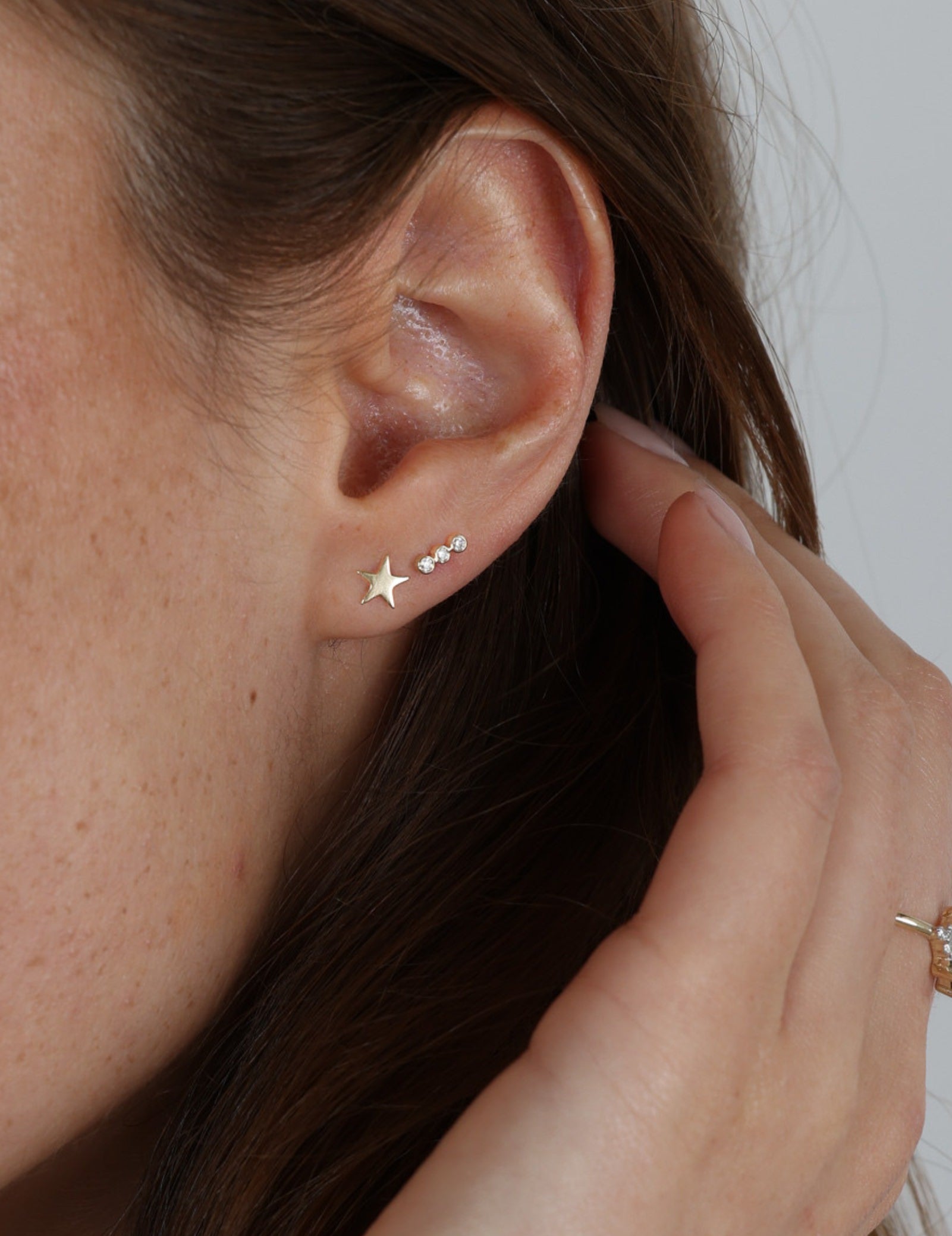 Star Studs have a gold weight of .44 grams and measure 6mm in size offering a balance of delicacy and substance