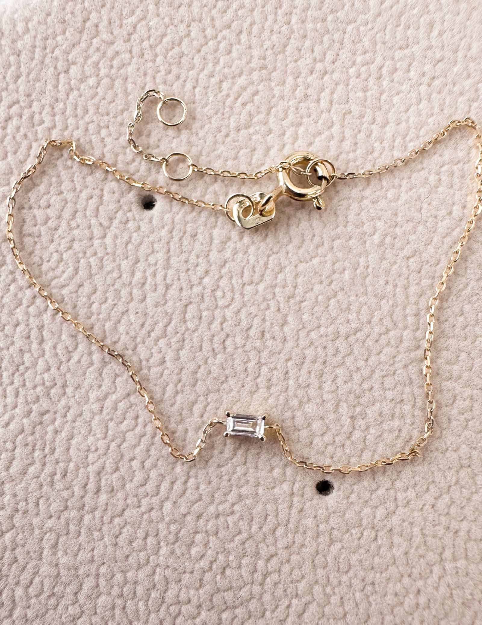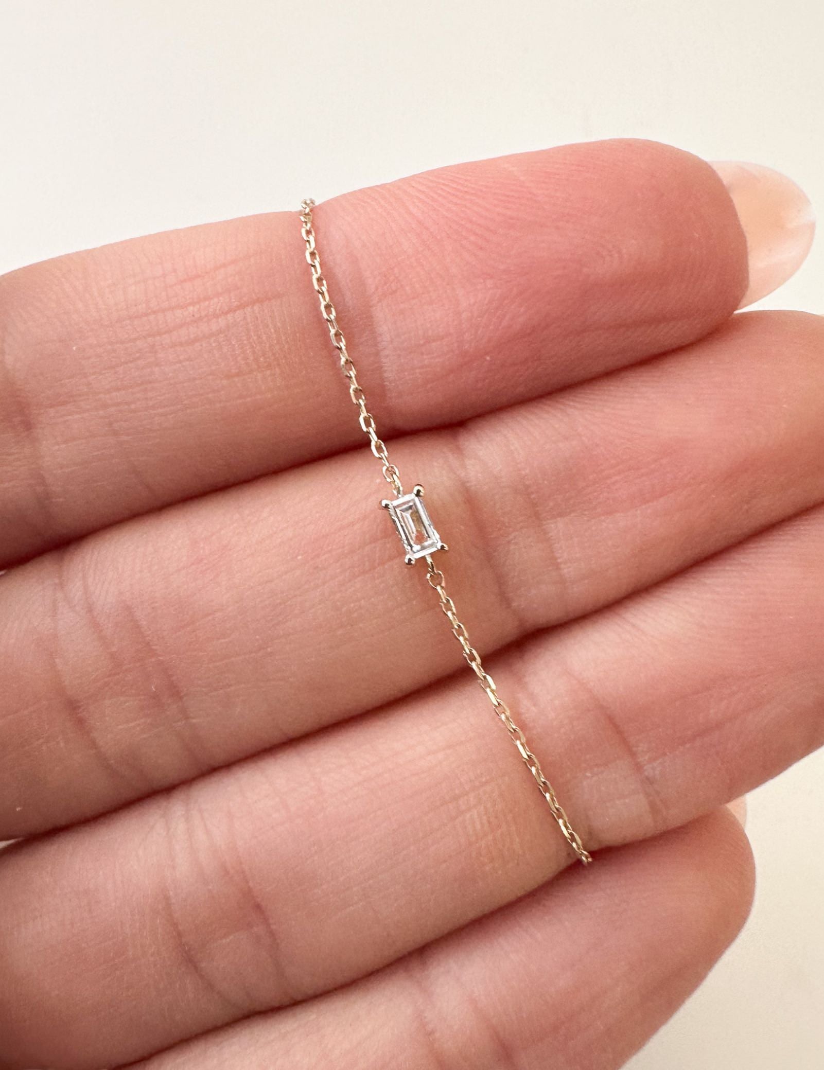 A spin on the classic brilliant cut diamond - This baguette brings a level of modern style to this dainty bracelet