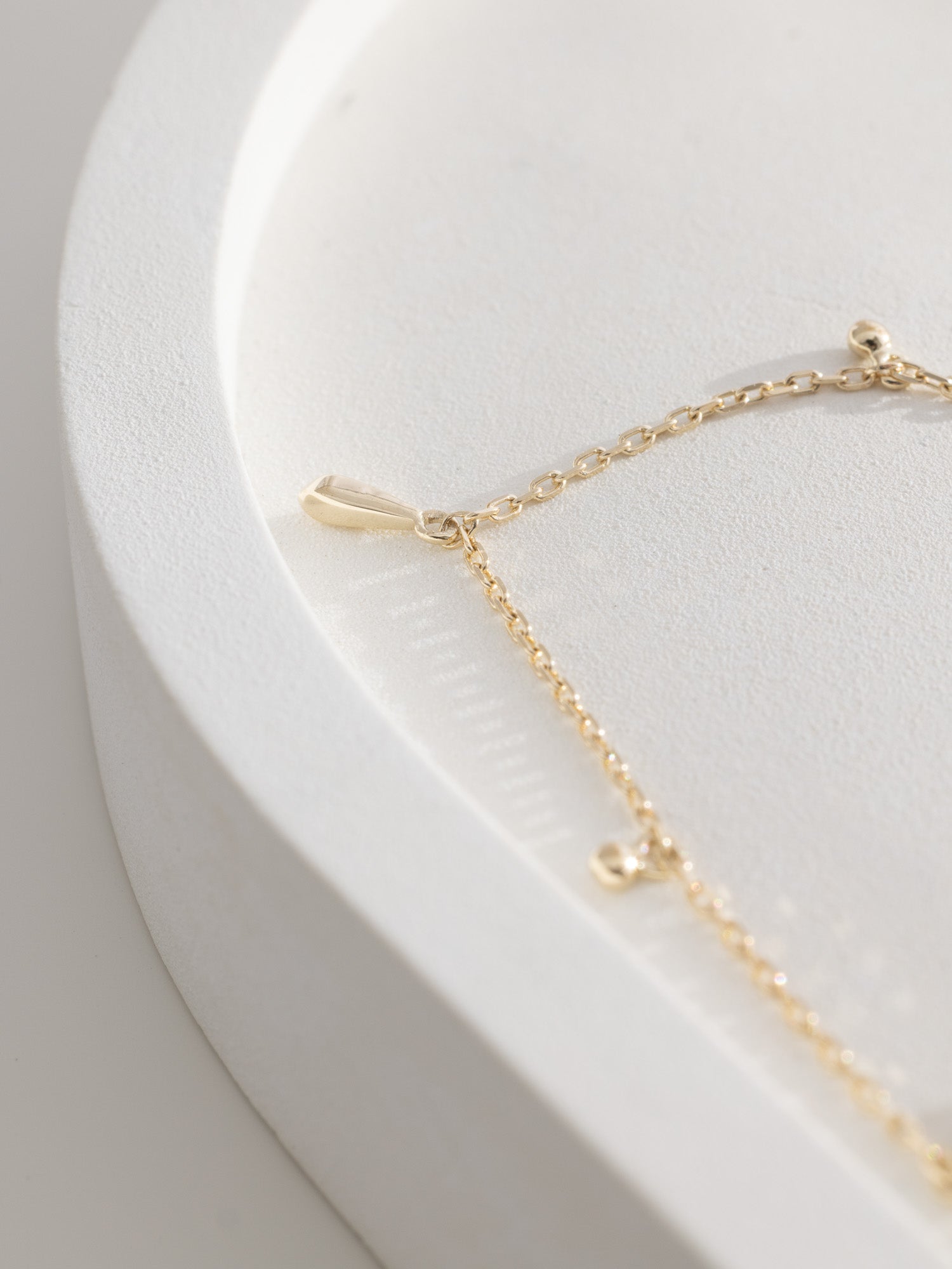 • Unique Detailing: The bracelet features 3 x solid gold teardrops that are 0.35mm long and 2 x solid gold ball drops that are 0.15mm in diameter, adding a special touch to the design​.