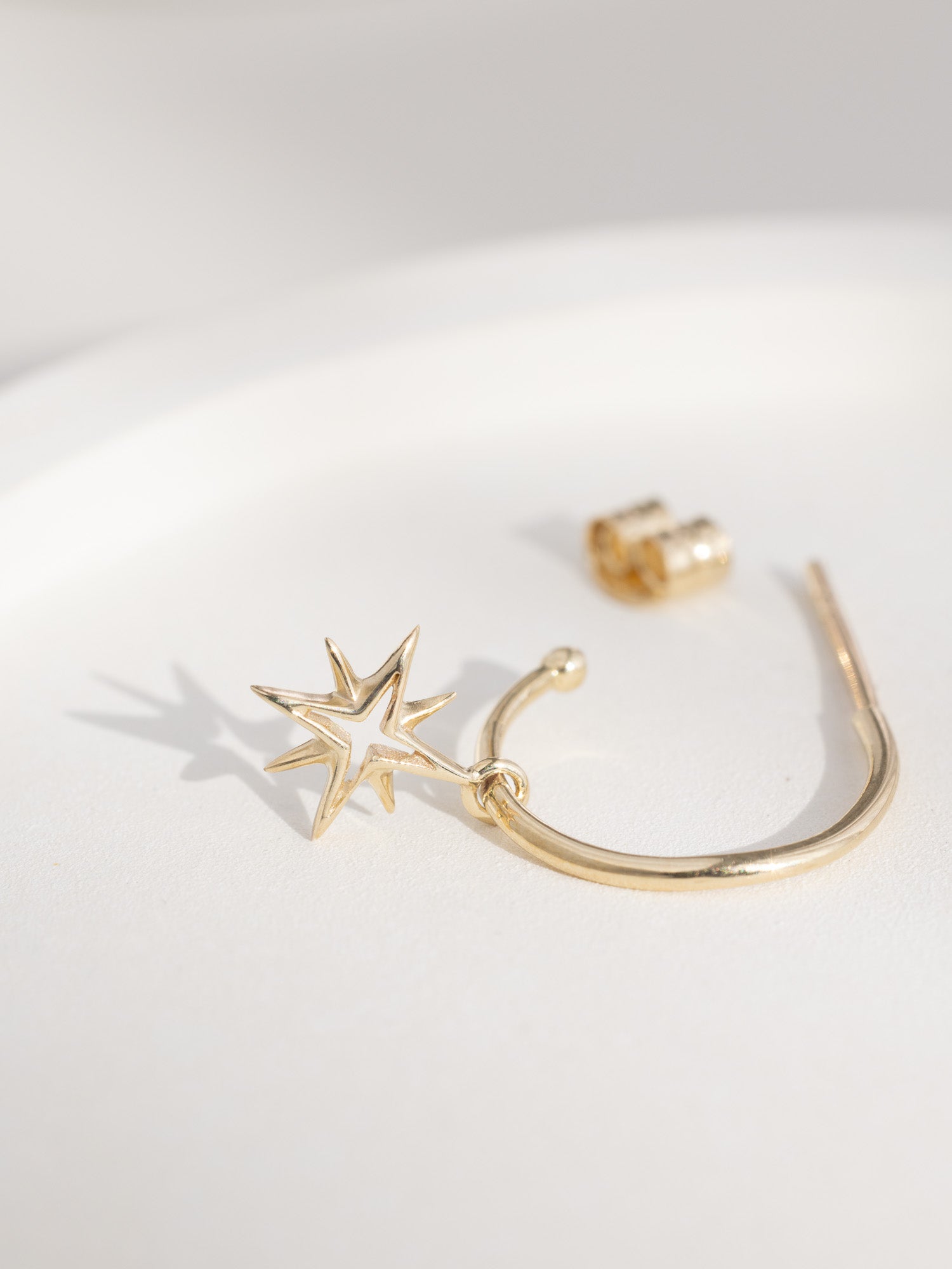 The design allows you to wear them in two ways you can showcase the North Star charm or opt for a sleek, plain gold hoop look.