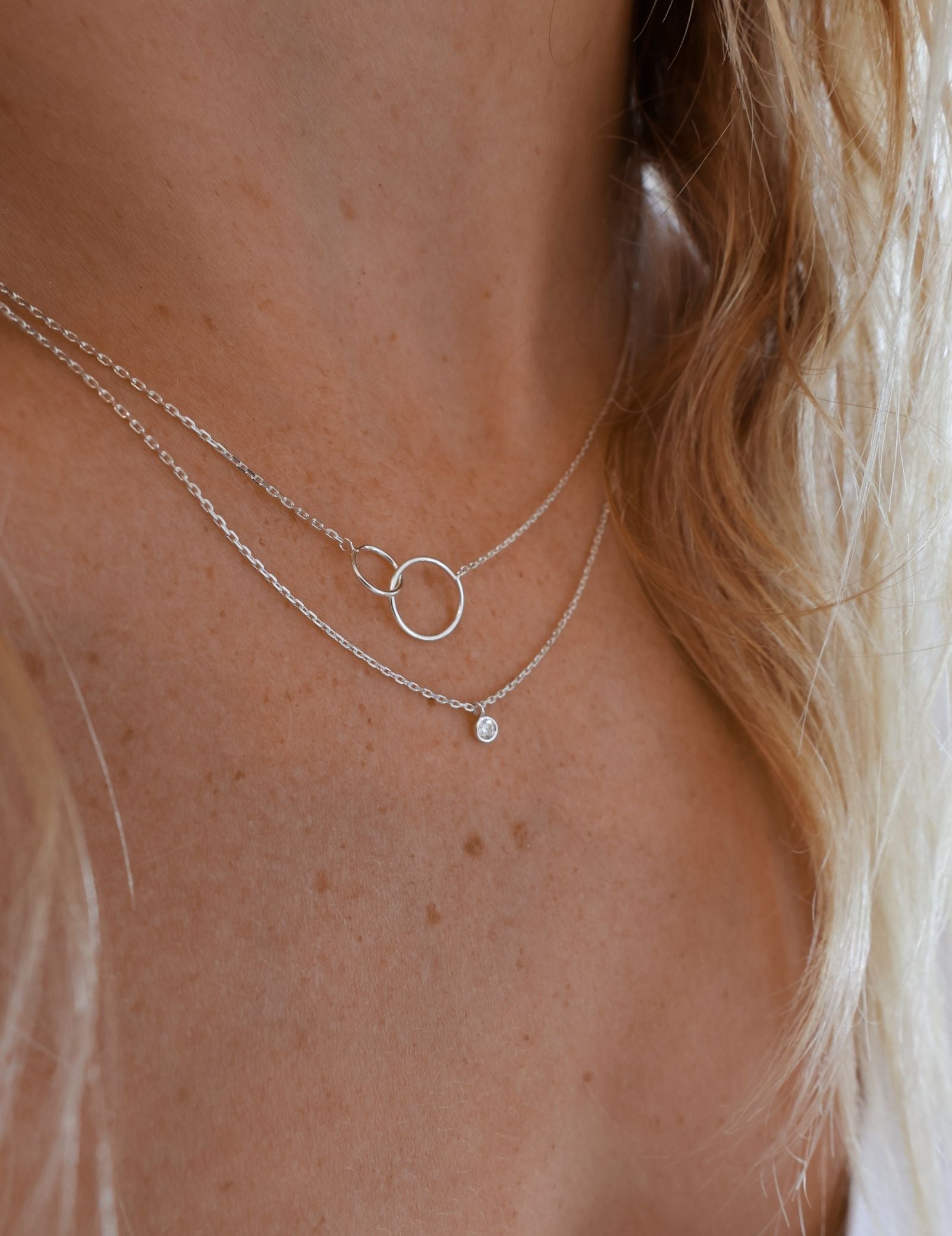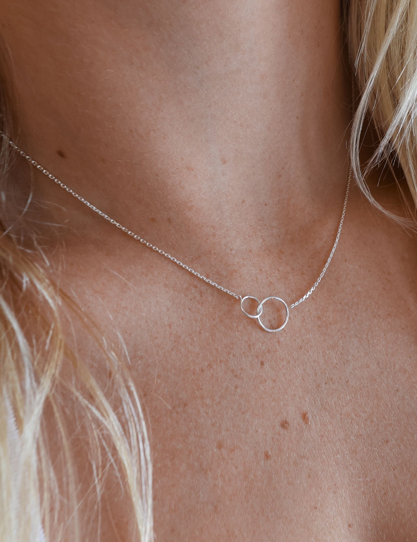 Two intertwined circles cast in sterling silver depict an everlasting bond, making it an ideal piece for mothers and children, best friends, or soul mates. This dainty, everyday style necklace features two rings - one large and one small, linked together in a representation of unity and infinite love.