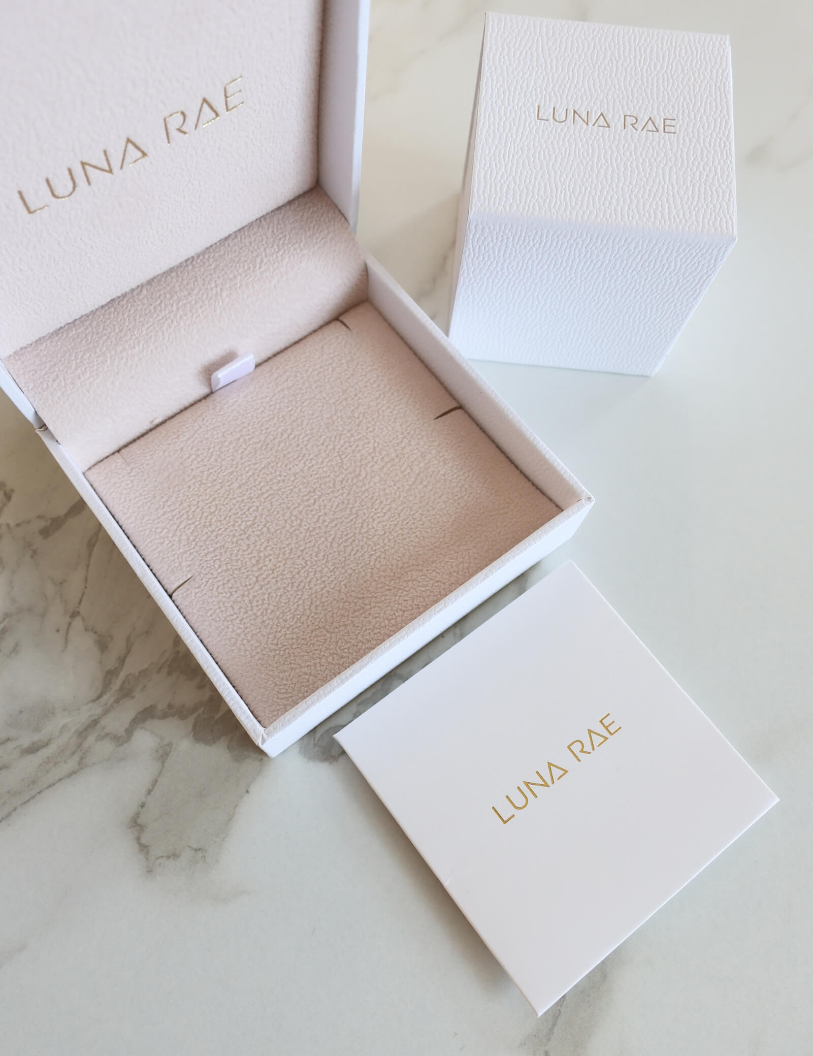 Shop with the assurance. Our lux packaging and personal touch will shine in every purchase. Premium quality packaging with a polishing cloth to keep your Luna Rae piece beautiful.
