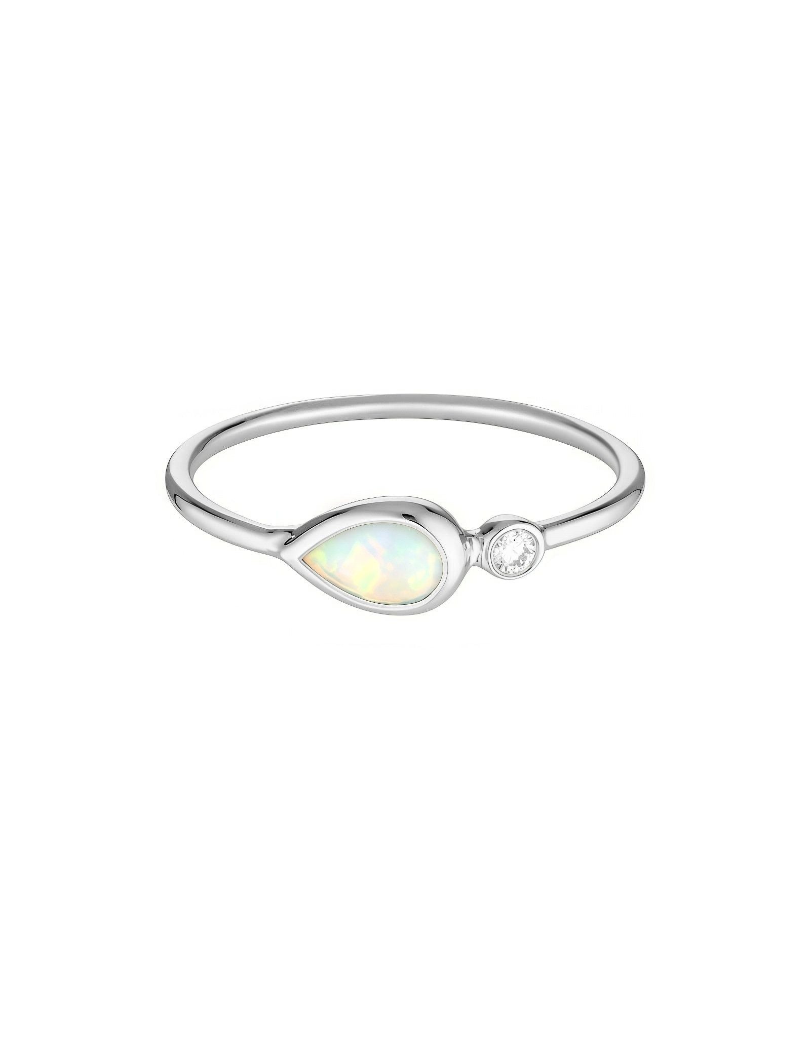 A natural, conflict-free white diamond of 2mm Diameter adds a dazzling sparkle, complementing the opal's vibrancy.