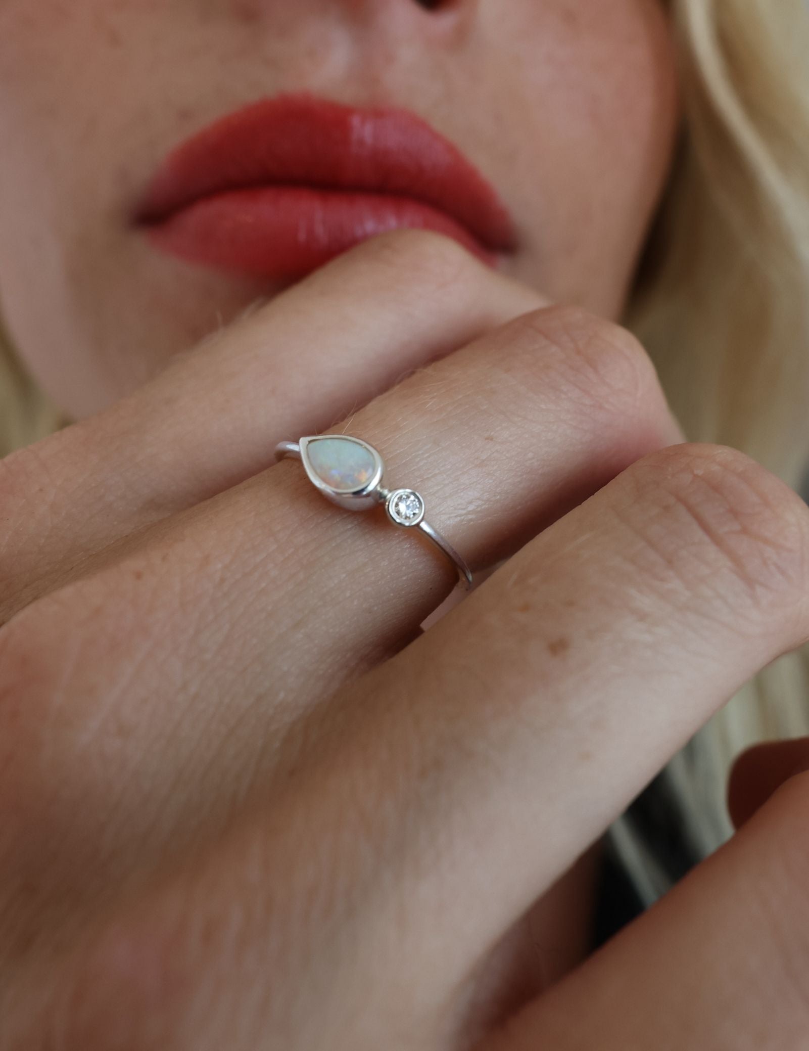 This one is so special to us, its a design that we simply love, the Australian opal is the hero of course, but she lights up even more next to the diamond
