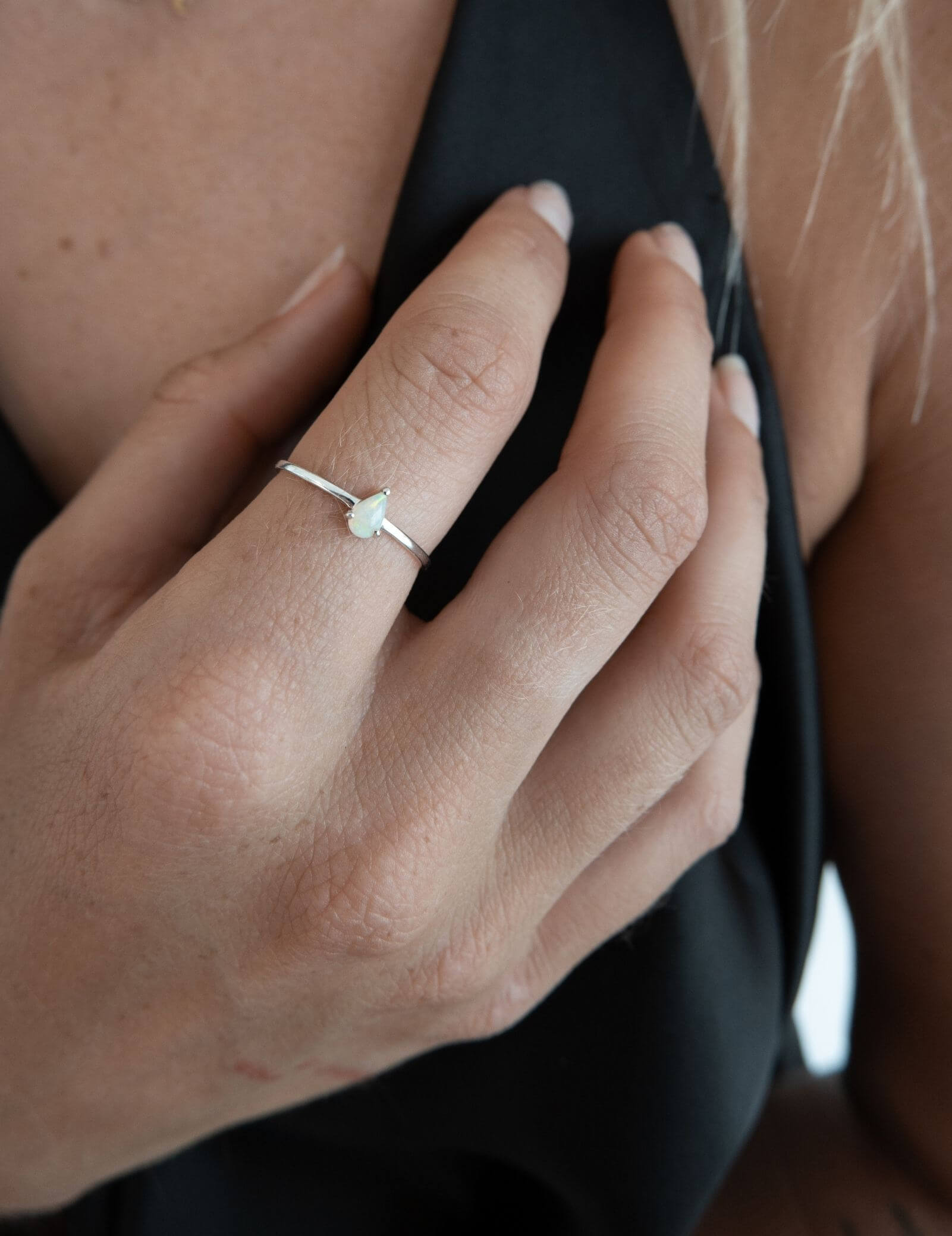 • Teardrop Australian Opal: The ring features a teardrop .14 carat Australian Opal measuring 5mm high & 3.5mm wide.