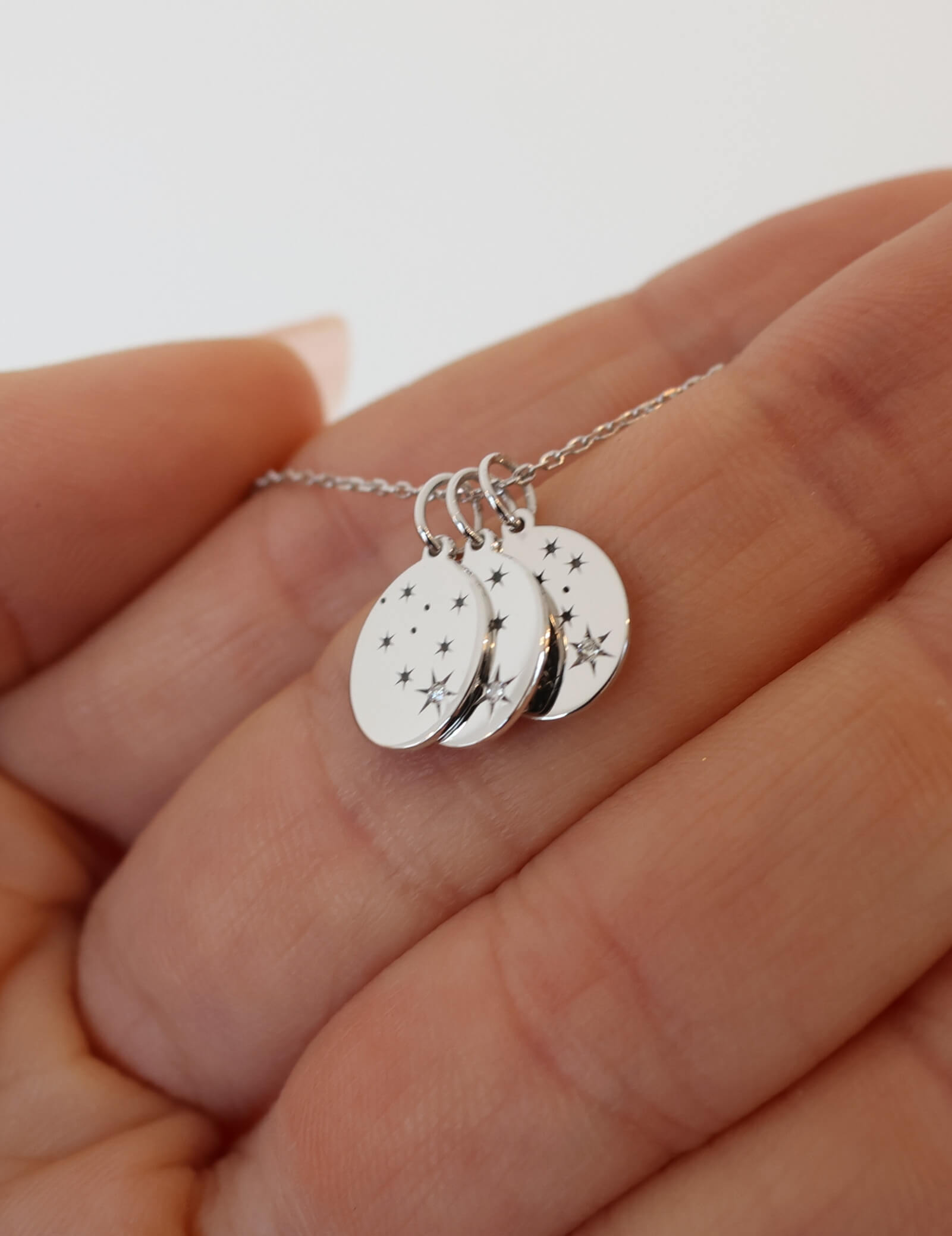 Immerse yourself in the cosmic beauty with the Stars of Cancer Necklace. Mirroring the constellation of Cancer, this necklace offers a unique reflection of those born under the zodiac sign from June 21 to July 22.