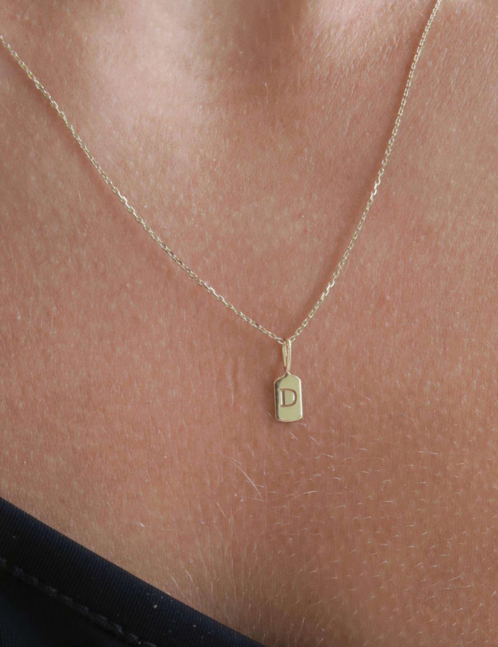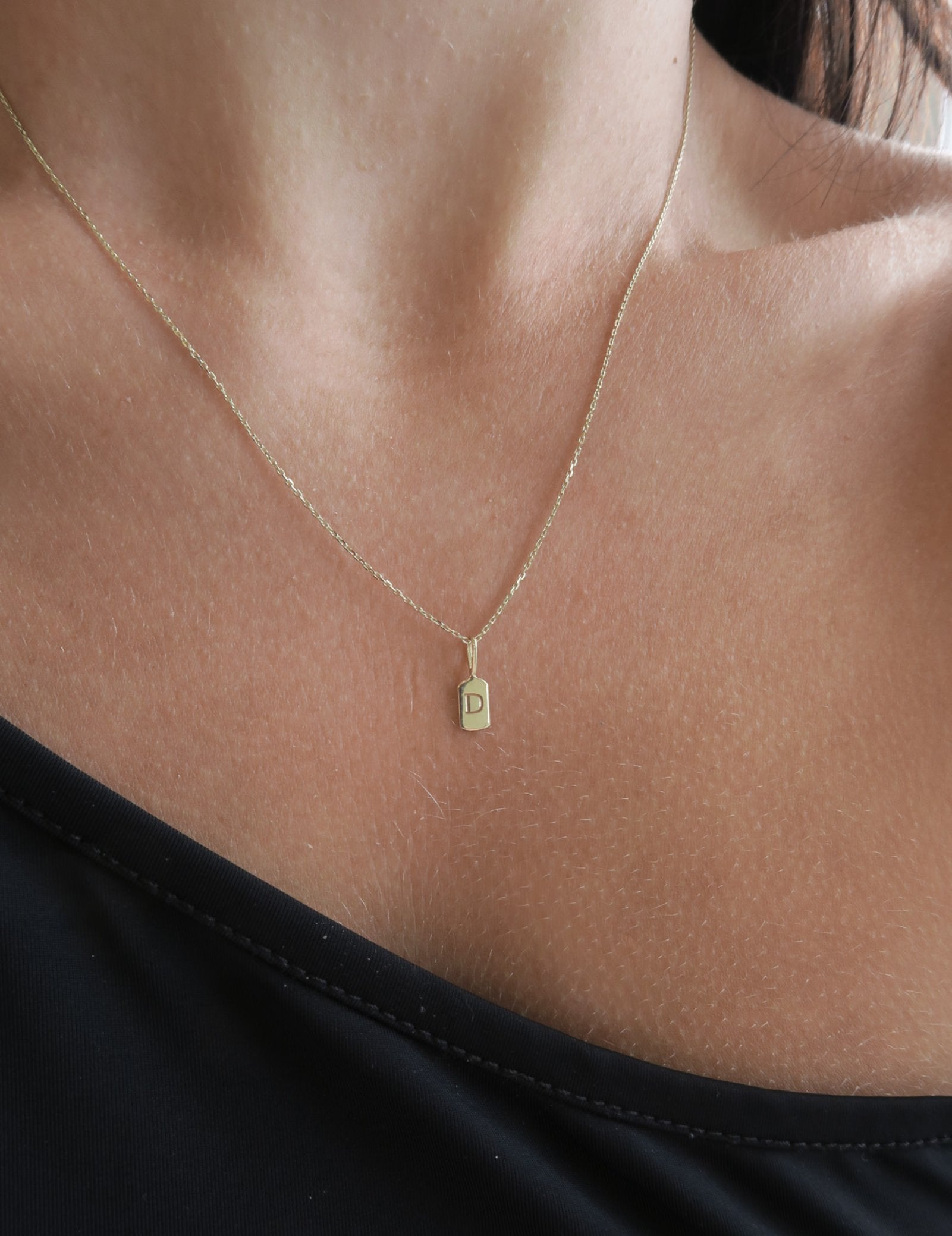 The Luna Letter D charm measures 11mm x 3.6mm, ensuring a subtle yet distinct presence on any outfit.