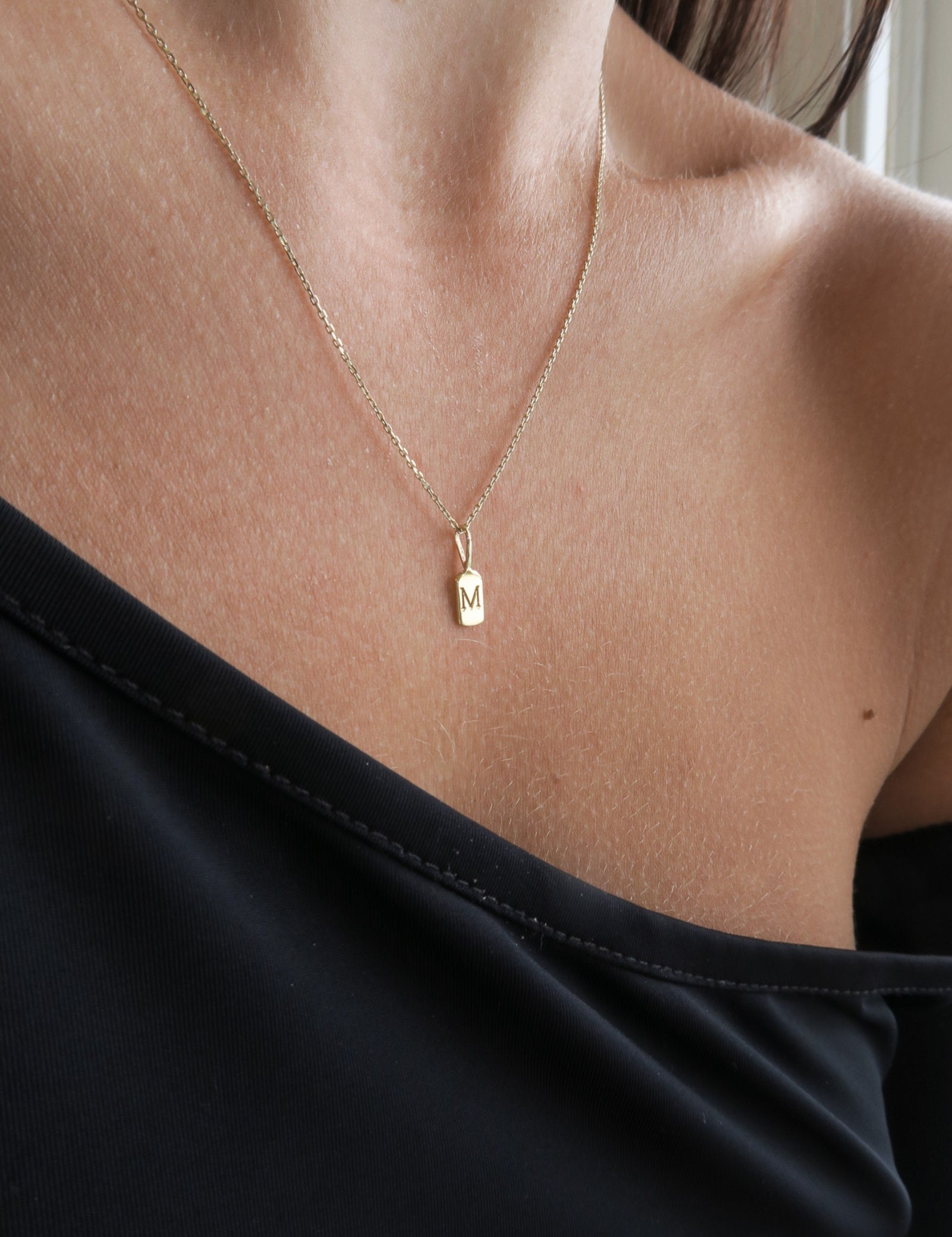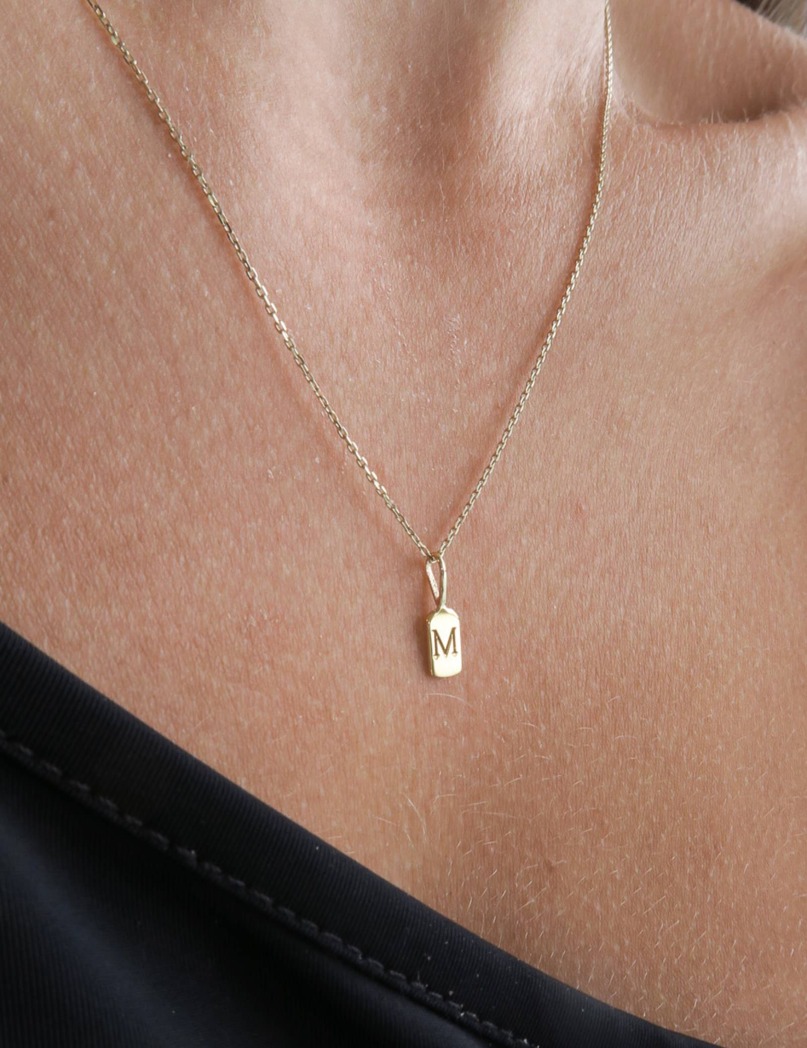 The Luna Letter M charm measures 11mm x 3.6mm, ensuring a subtle yet distinct presence on any outfit.