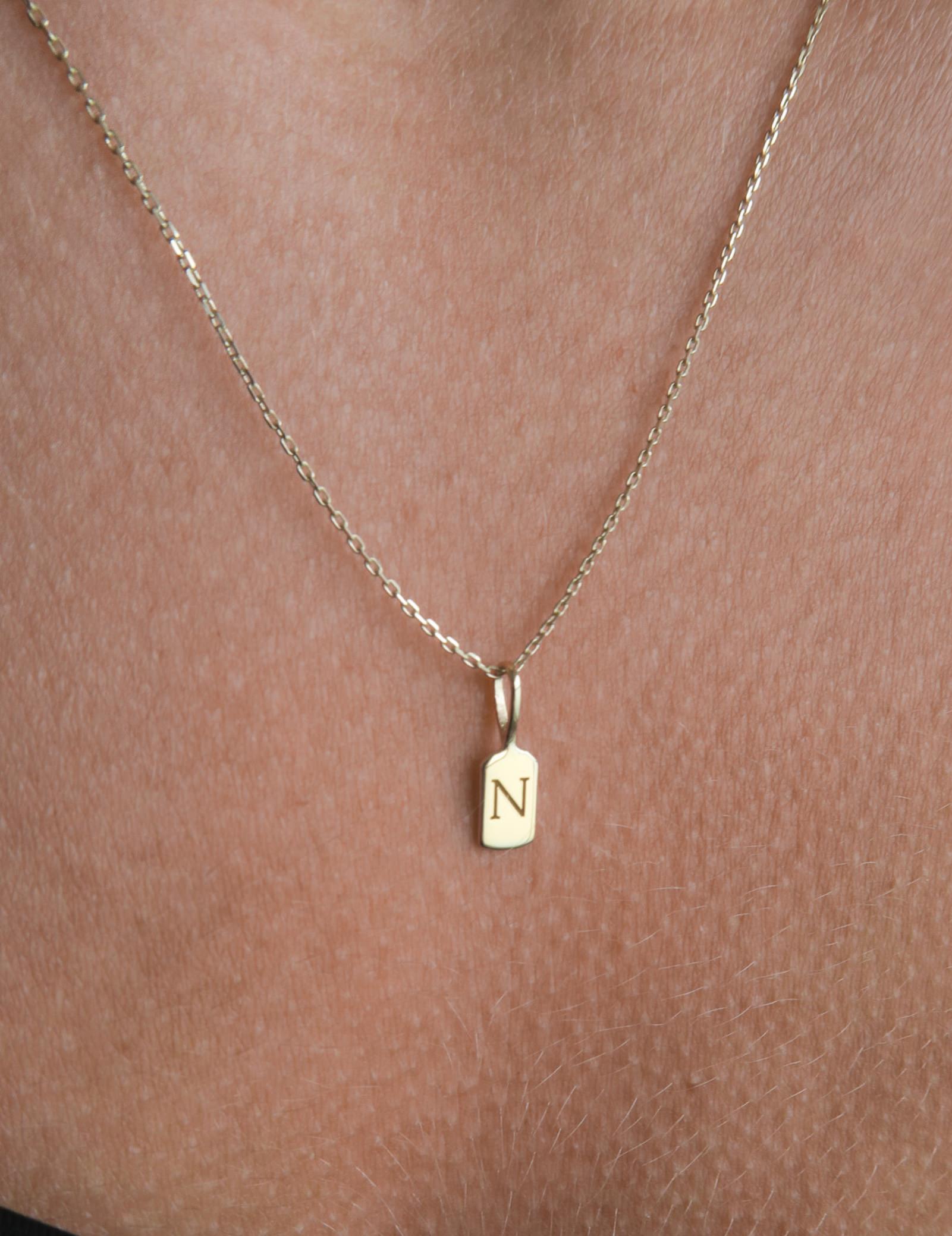 The Luna Letter N charm measures 11mm x 3.6mm, ensuring a subtle yet distinct presence on any outfit.