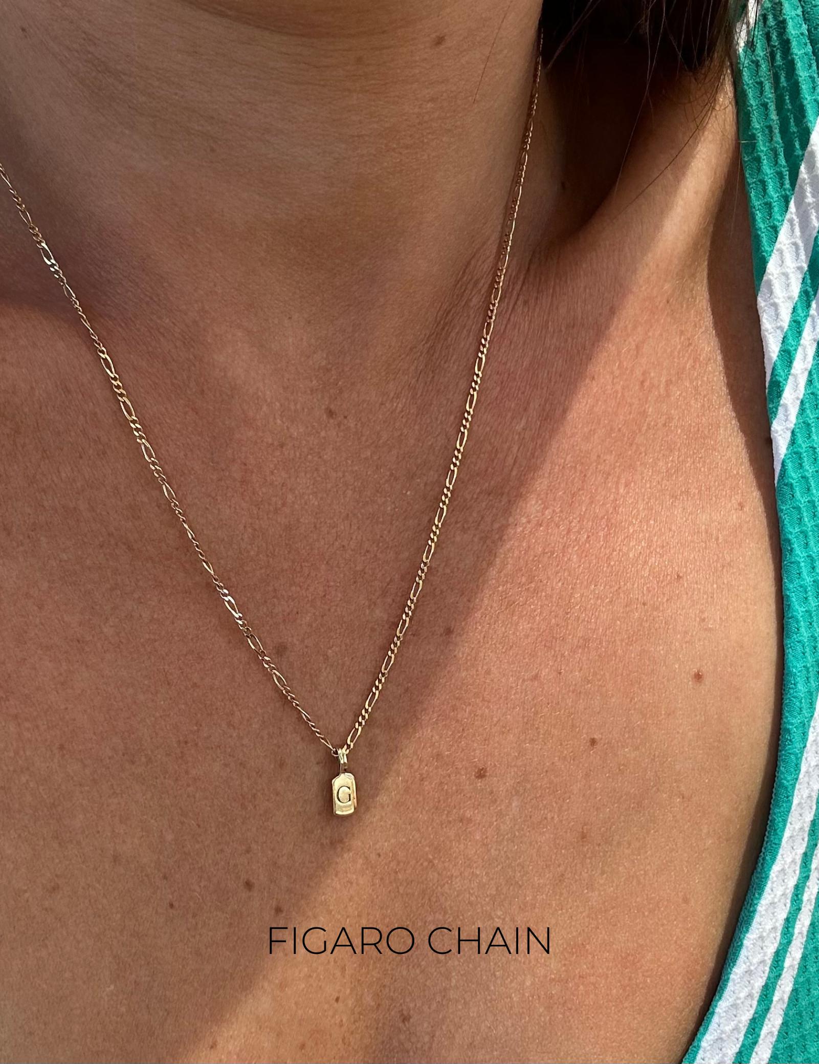 Alternatively, you may opt for the Figaro Chain, another sophisticated choice. Available in 40cm or 45cm lengths without an extension. It features a thickness of approximately 1.5mm, striking a balance between durability and refined style. The combination of the Luna Letter N charm with the Figaro Chain will result in a gold weight ranging from approximately 1.95 to 2.25 grams which are higher due to the chain's specifications.