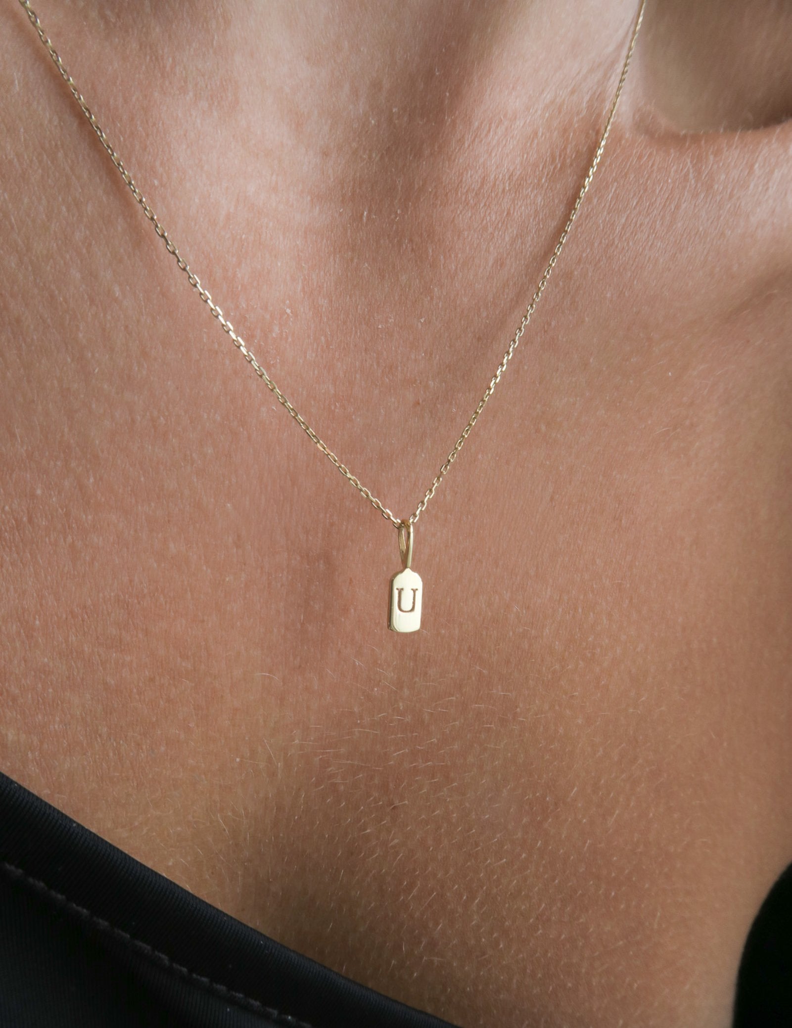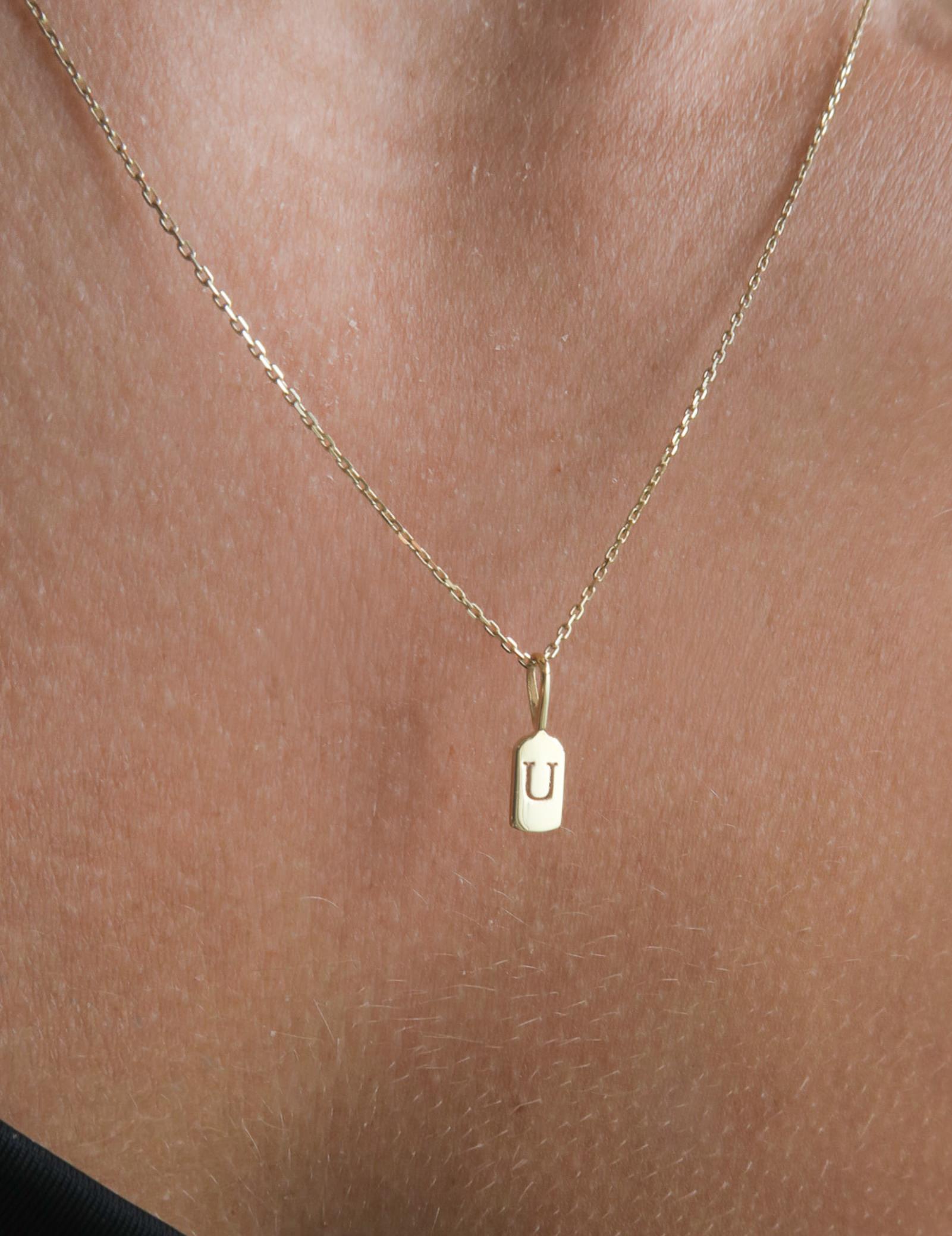 The Luna Letter U charm measures 11mm x 3.6mm, ensuring a subtle yet distinct presence on any outfit.