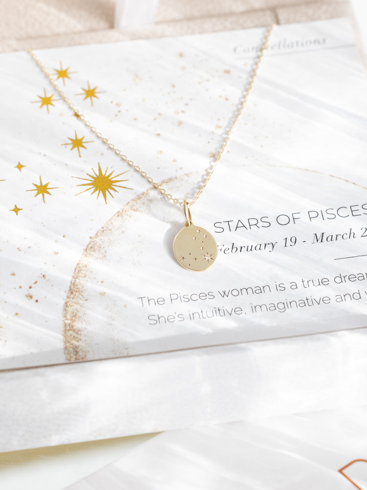 Navigate the cosmos with the Stars of Pisces Necklace. Drawing inspiration from the Pisces constellation, this necklace offers a unique reflection of individuals born under this zodiac sign from February 19 to March 20.
