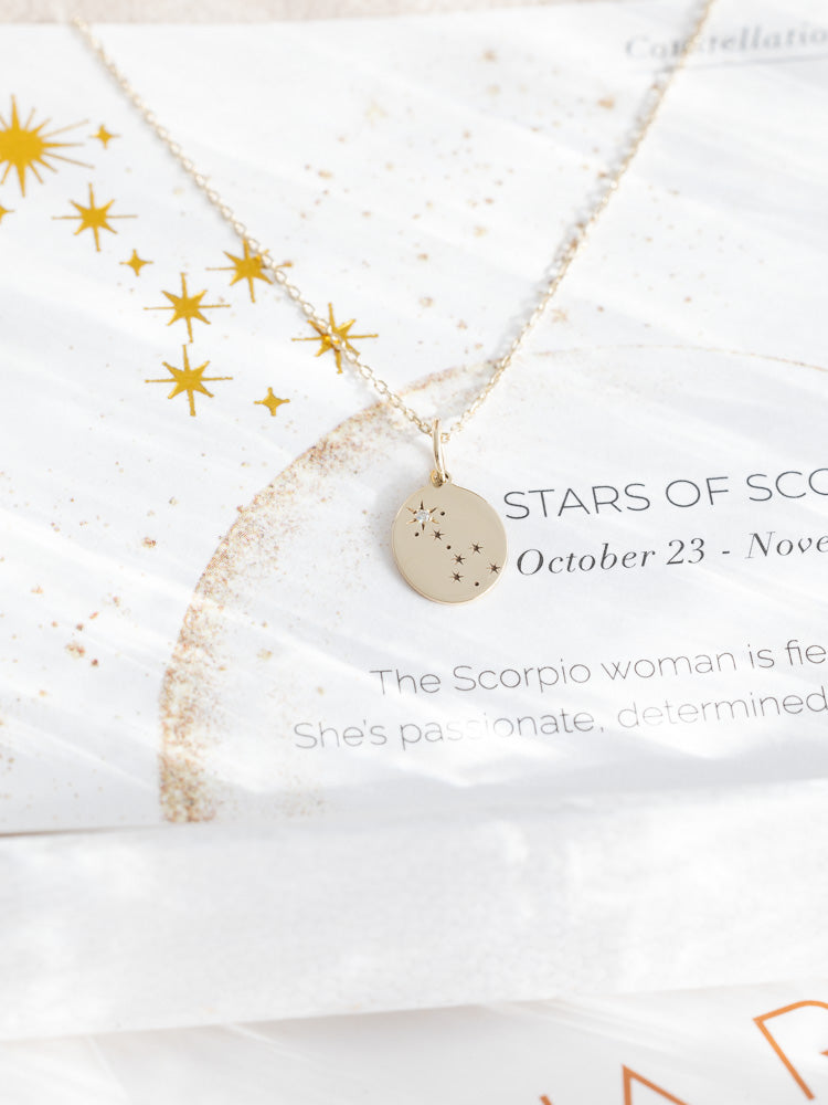 Discover the celestial beauty with the Stars of Scorpio Necklace. Influenced by the Scorpio constellation, this necklace is a special reflection of those born under the zodiac sign from October 23 to November 21.