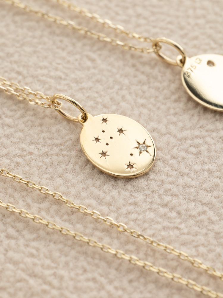 The Stars of Scorpio charm has a gold weight of approximately 1.20 grams, with dimensions of 8mm x 9.5mm. The necklace features a 1mm white diamond in the Shaula star, which is brilliant cut and colour is GH-I1. All diamonds are authentic & ethically sourced.